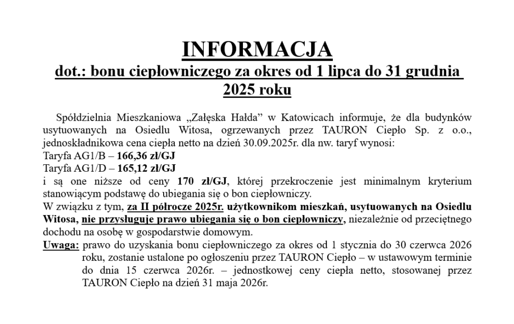 W ostatnich dniach w klatkach schodowych naszych budynków pojawiły się ogłoszenia, informujące o rzekomym obowiązku zakupu czujników czadu i dymu. Pragniemy oświadczyć, że Spółdzielnia Mieszkaniowa „Załęska Hałda” w Katowicach nie jest autorem tych ogłoszeń i nie wyrażała zgody na ich umieszczenie.
